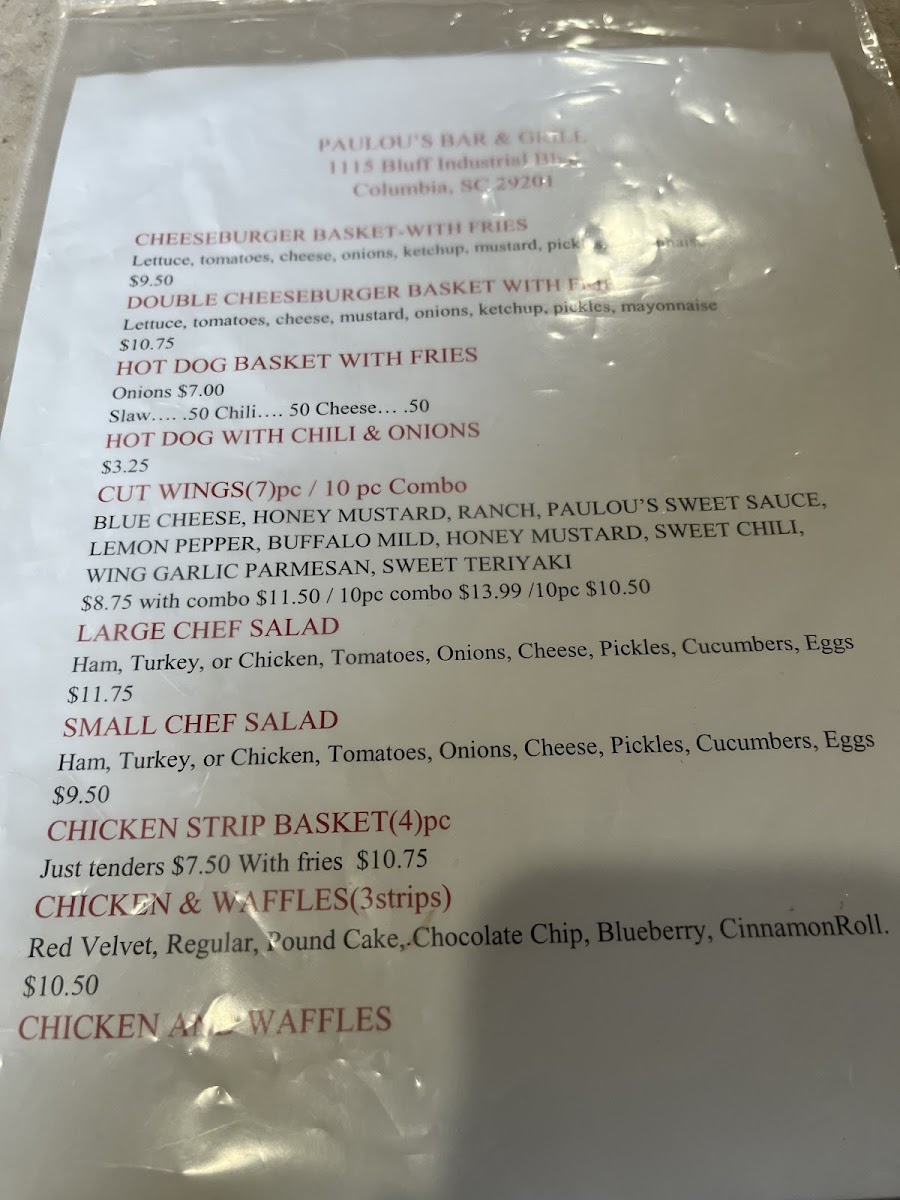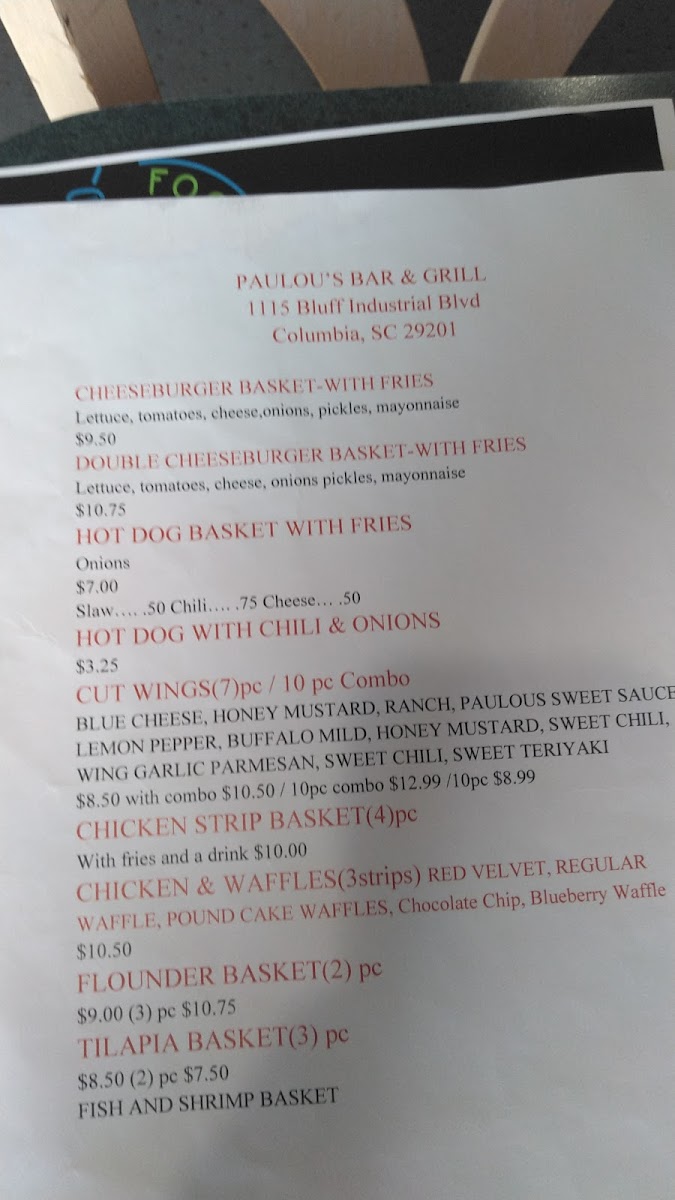 Welcome to Paulou's Bar and Grill, a culinary gem located at 1115 Bluff Industrial Blvd, Columbia, SC. This inviting eatery offers a diverse menu that showcases a variety of mouthwatering dishes, each crafted to satisfy your taste buds.